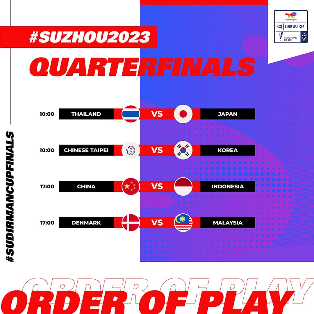 by: Gen — May 22, 20232023年BWF苏迪曼杯四分之一决赛于2023年5月19日星期五在中国无锡奥林匹克体育中心体育馆举行。四分之一决赛的结果如下: …